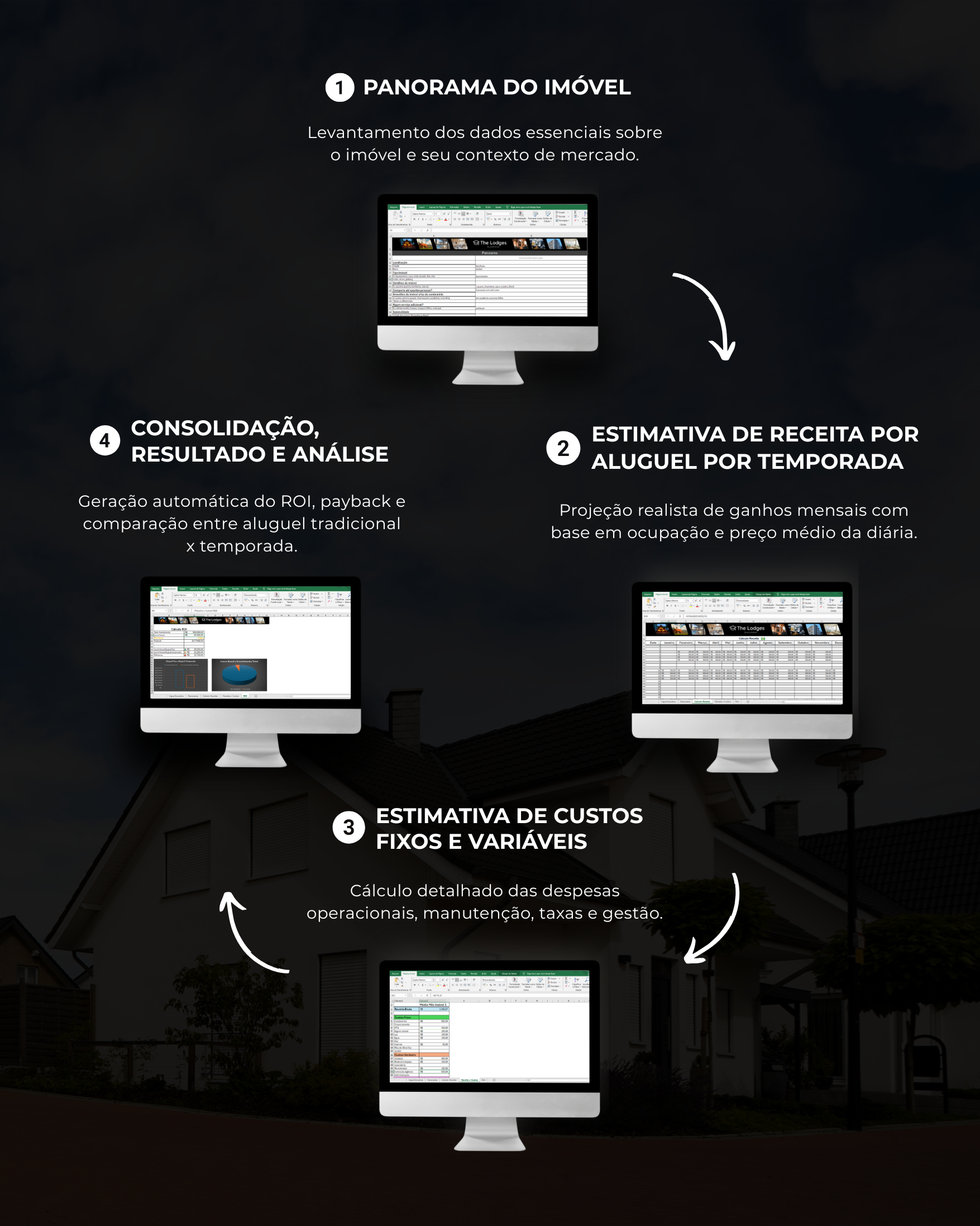 Consolidação, Resultado e Análise – Geração automática do ROI, payback e comparação entre aluguel tradicional x temporada.